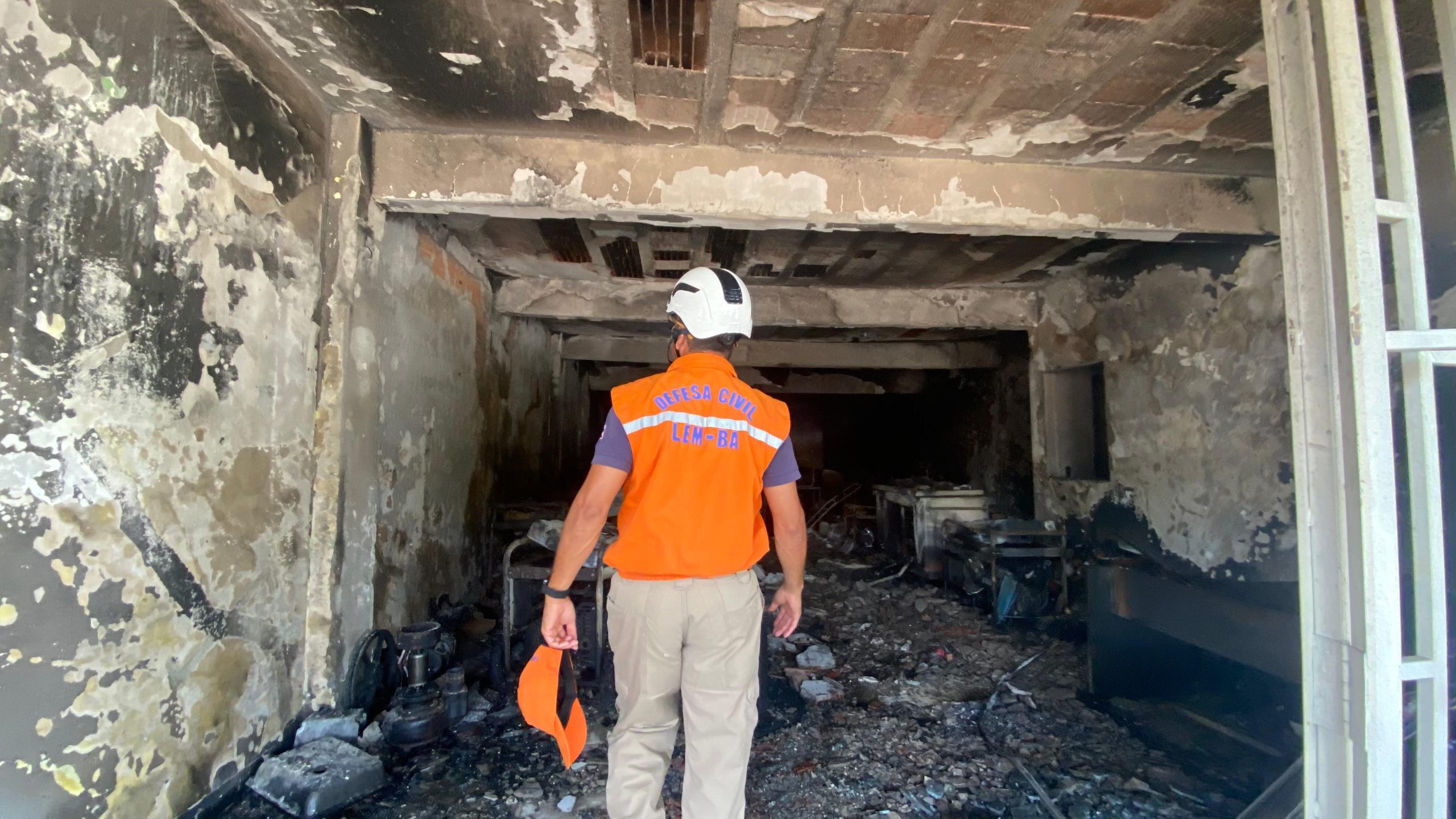 LEM: Defesa Civil faz vistoria em oficina mecânica após incêndio, no bairro Santa Cruz