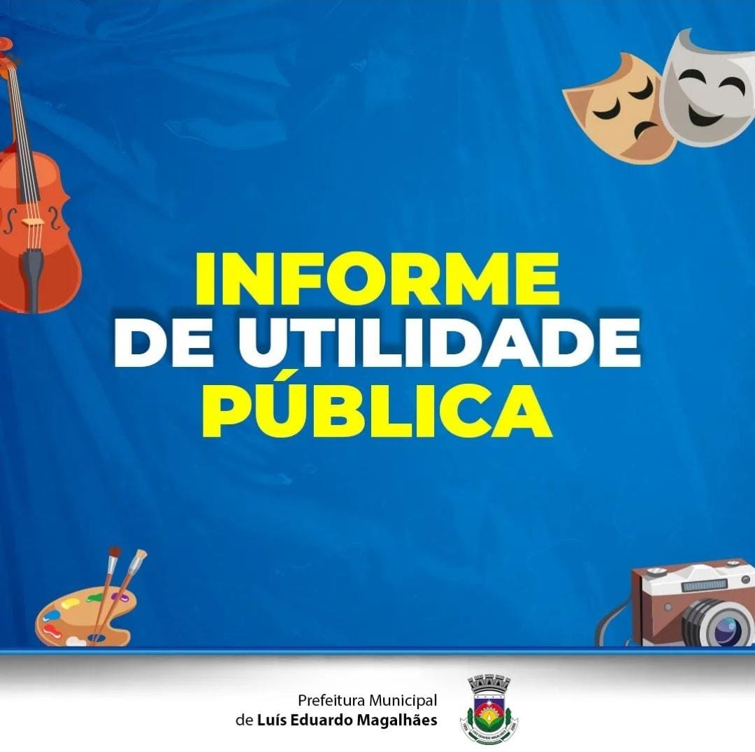A Prefeitura de Luís Eduardo Magalhães, convoca os beneficiados pela Lei Aldir Blanc a comparecerem à sede da Secretaria de Cultura e Turismo, localizada na Rua Valdemar Klein, nº 129, Jardim Imperial, até o dia 17 de março.