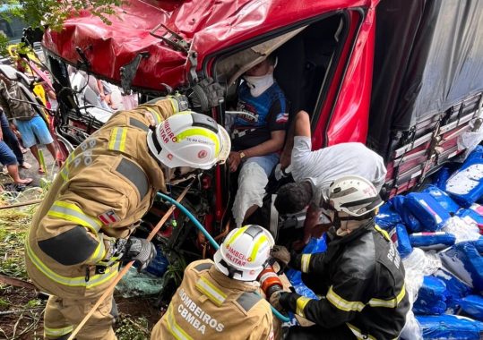 De acordo com informações repassadas ao Centro Integrado de Comunicações (CICOM), o acidente envolveu dois caminhões, com duas vítimas presas às ferragens e com sinais vitais, sendo solicitado apoio imediato das guarnições.