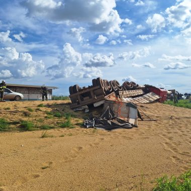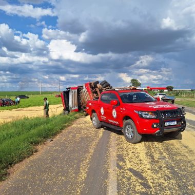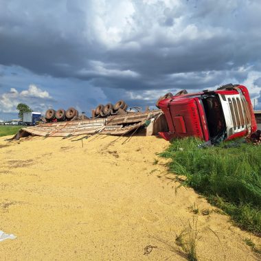 Após o atendimento às vítimas, os militares realizaram a limpeza da pista, retirando parte dos grãos espalhados e garantindo melhores condições de segurança para o tráfego no trecho da rodovia.