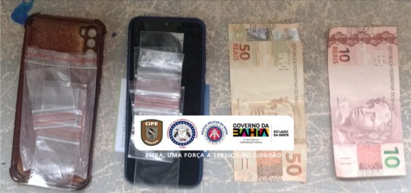 Ao todo, foram apreendidos 21 papelotes de cocaína, totalizando aproximadamente 24 gramas, um cigarro de maconha, um aparelho celular modelo Redmi Note 8 e a quantia de R$ 60,00 em espécie.