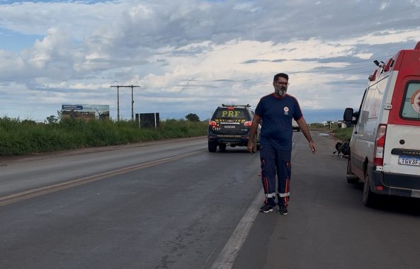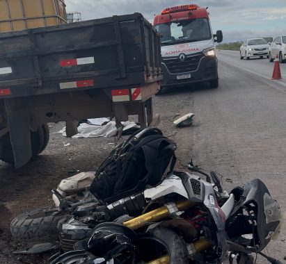 Um grave acidente envolvendo um caminhão Ford/F4000 e uma motocicleta de alta cilindrada BMW/G310 GS foi registrado na manhã desta sexta-feira (10), por volta das 6h40, na rodovia BR-242, nas proximidades da entrada do povoado Cerradão, zona rural de Barreiras, no Oeste da Bahia.