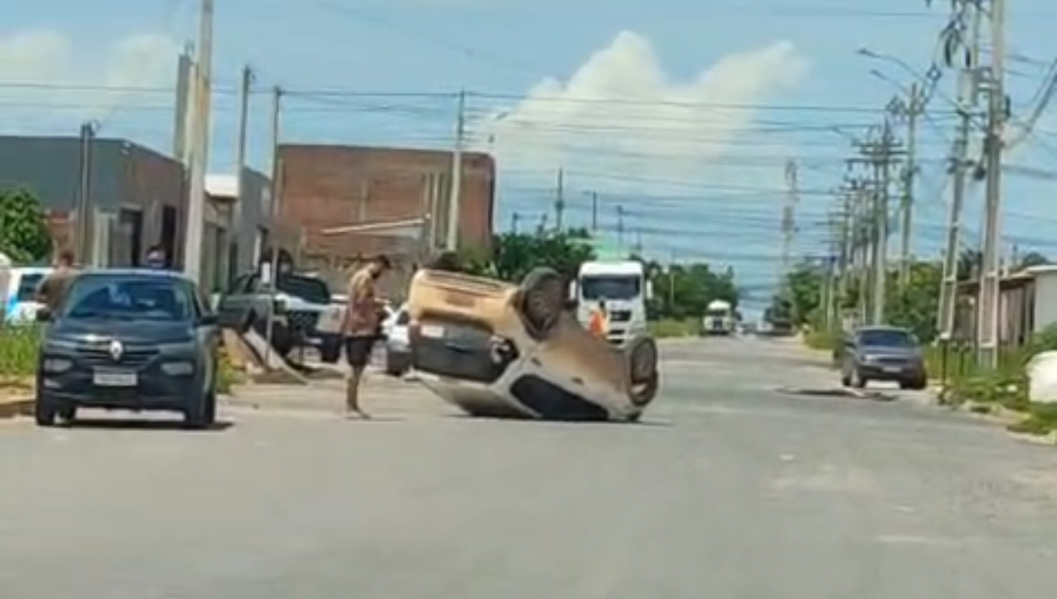 Carro capota após colisão no bairro Florais Léa IV, em Luís Eduardo Magalhães