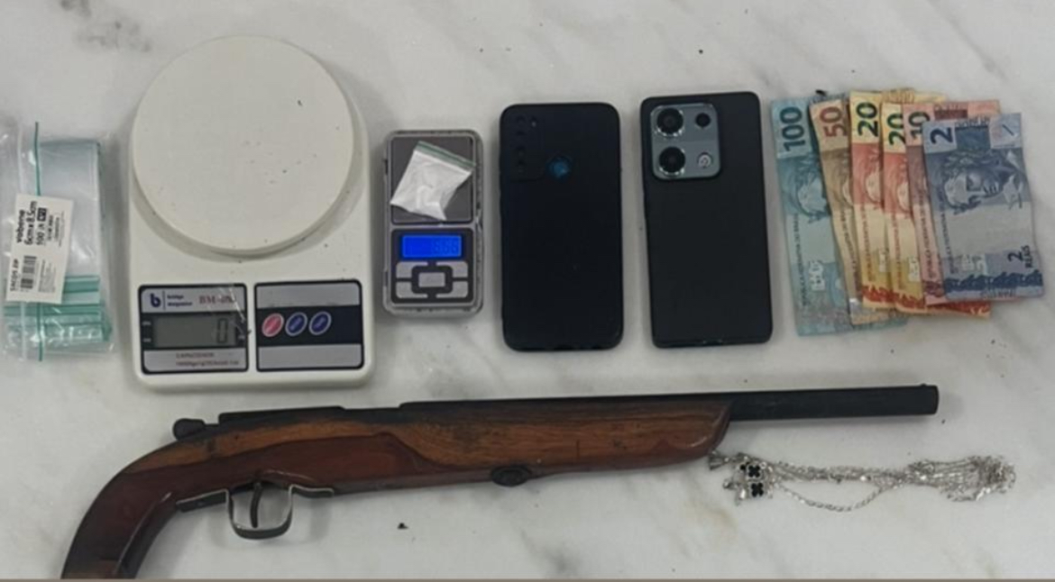 CIPE/Cerrado prende traficante e retira drogas e arma de fogo das ruas de LEM