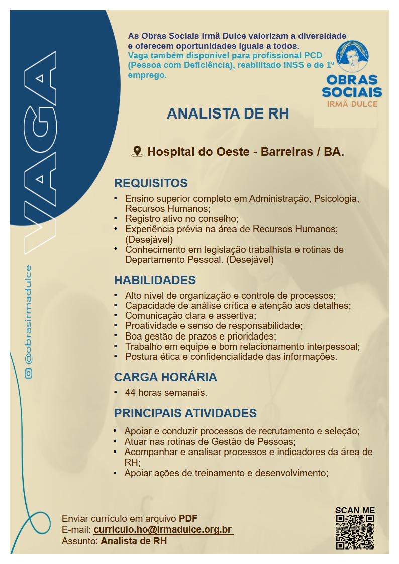 Há vaga de emprego no Hospital do Oeste em Barreiras